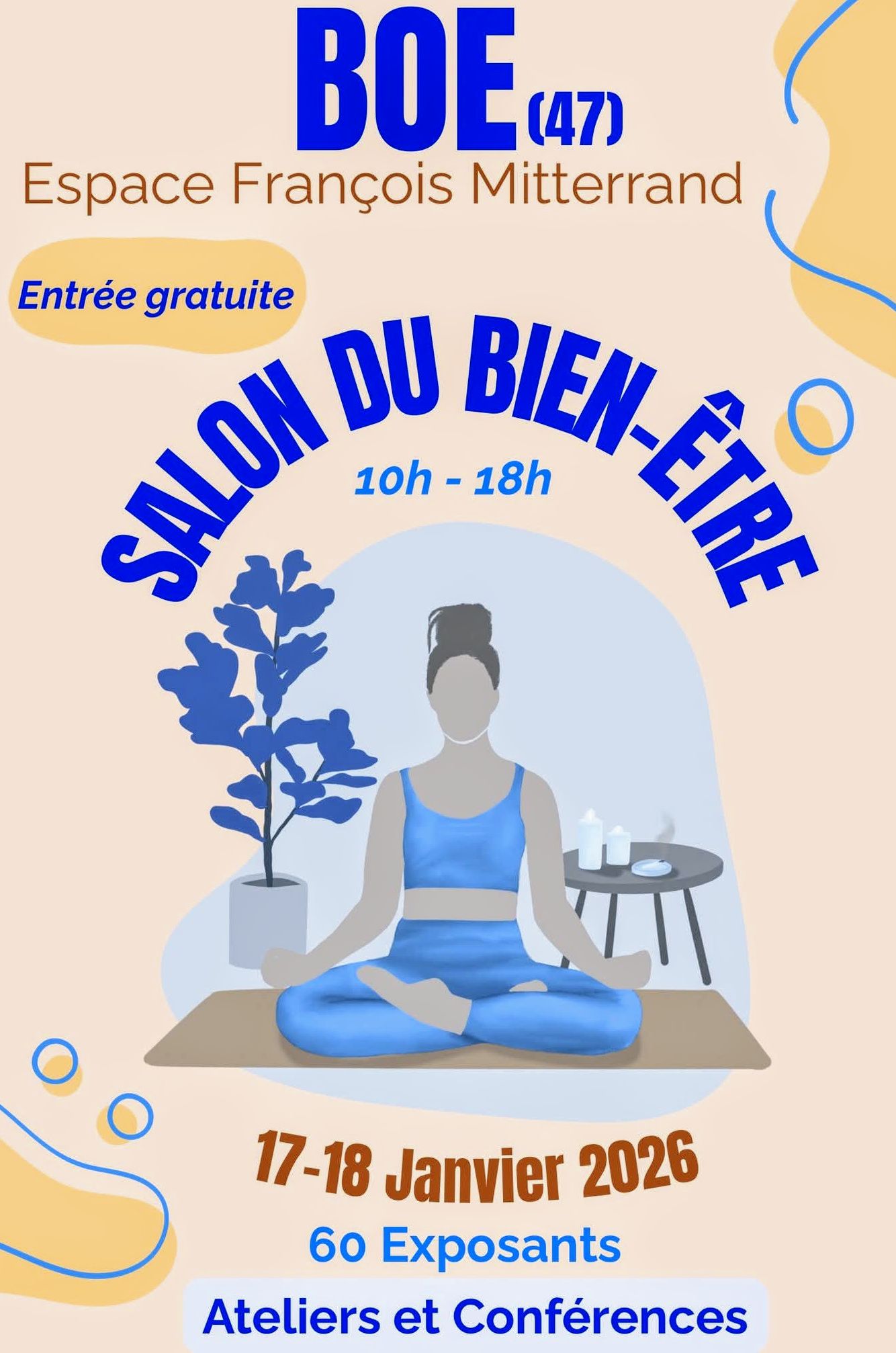 Le SALON DU BIEN-ÊTRE À BOE (47) se déroulera à Avenue François Mitterrand, 47550 Boé, France dans le Occitanie. Une magnifique salle de 500M2, bien référencée et facile d'accès, avec un parking à proximité.
