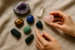 💡Conseil pratique : Commencez avec une pierre simple comme l’améthyste, idéale pour apaiser l’esprit. Placez-la sur votre table de nuit pour un sommeil réparateur.